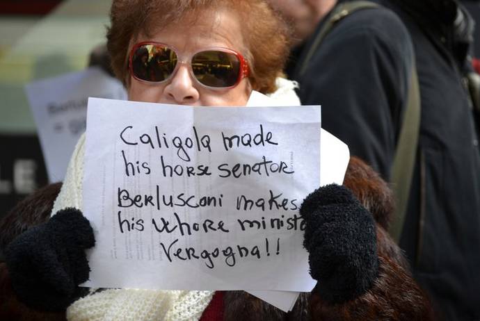 Not only women. About two hundred Italians sporting no political symbols gathered in Times Square to defend the dignity of the women and the honor of the country. On Sunday, in New York and many other foreign cities (London, Paris, Washington, Berlin, Barcelona, among others), a world-wide protest took place to ask for the resignation of Silvio Berlusconi, the Italian Prime Minister in the midst of yet another judicial scandal.