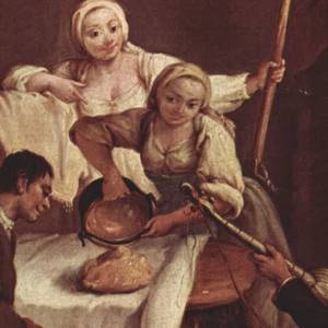 Pietro Longhi, La polenta Dining in & out Digging into (the History of) PolentaDino Borri(January 20, 2019)Deep roots for a product that Christopher Columbus brought over from Europe to America. Indigenous peoples first prepared it using cornmeal and water.