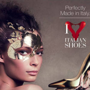 An exhibit featuring a variety of “Made in Italy” shoes on display throughout New York Fashion Week