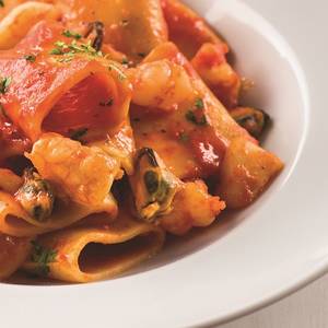 Paccheri are wide tubes of pasta with lots of room for capturing a savory, chunky sauce. Typical to southern Italy, this recipe for paccheri with seafood transports us to sunnier days on the coast, watching the sun glance off blue-green waves, even on the coldest winter days.